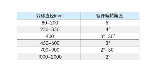●當(dāng)接口安裝完畢后, 可根據(jù)管徑調(diào)整偏移角,偏移的角度要符合下表的要求。